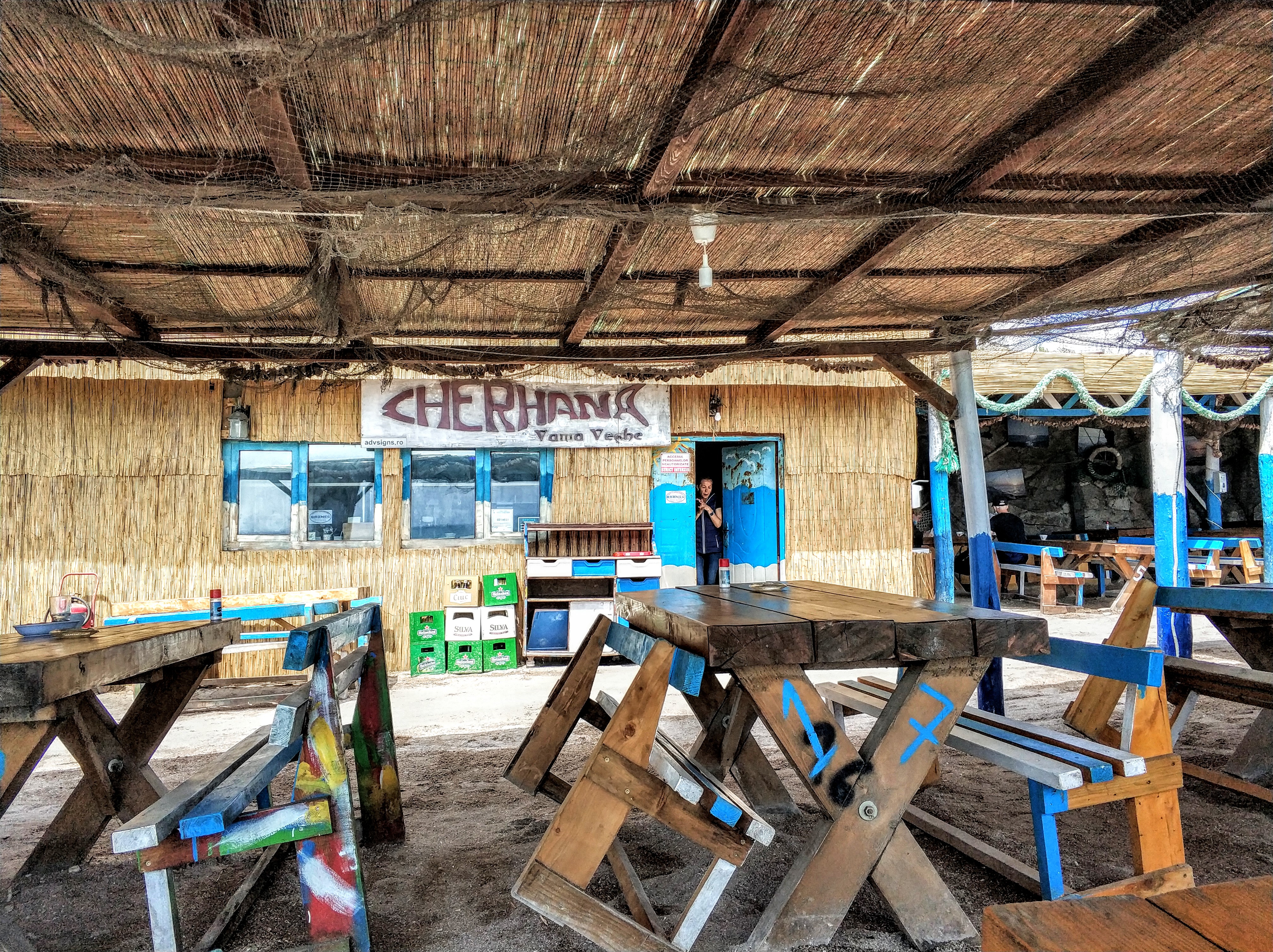 Cele două zile petrecute în Constanța ne-au trezit amintiri și dor de ducă. Ducă doar pe la alții, măcar la bulgari, să ne simțim bine la o terasă, la o cherhana, o mehana, ceva. Căci la noi am luat litoralul la rând, până în Vama Veche la Cherhana, în nordul stațiunii. Mâncăruri de pește! Slabă oferta, slabă ciorba, extrem de mici guvizii! Și cel mai rău, nu servesc mămăligă așa că tu, doritor de produse dobrogene din pește, mănânci pește prăjit sau la grătar cu mujdeiul clasic ori sarmuzac și cu … franzelă! Și dacă ești șofer, cazul nostru, bei la ciorba de pește și la sarmuzac doar prigat de piersici ori portocale, cel mai bine apă, că altceva nu-i! Tare oferta!