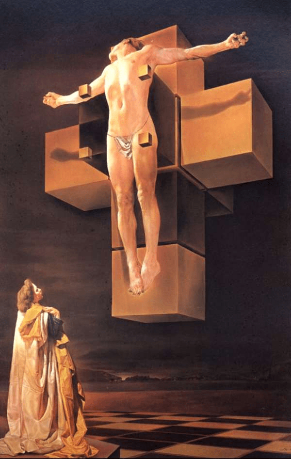 Totuși din multele forme de cruci pe care le acceptă creștinismul în totalitatea lui, pictorii le-au ales în special pe cele catolice și rusești. Dar n-au găsit decât o interpretare comună a lui Isus, de obicei cu capul plecat de suferință sau cu el ridicat în sus spre Dumnezeu Tatăl. Și mereu cu acea batjocoritoare cunună de spini. Practic marii artiști și iconarii simpli, s-au copiat unul pe altul de-a lungul multor secole. Iată însă că în sec. XX, excentricul și controversatul auto intitulat divinul Dali, Salvator Dali, vine cu ceva nou, o pictură apreciată de mulți dintre înțelepții religiilor.