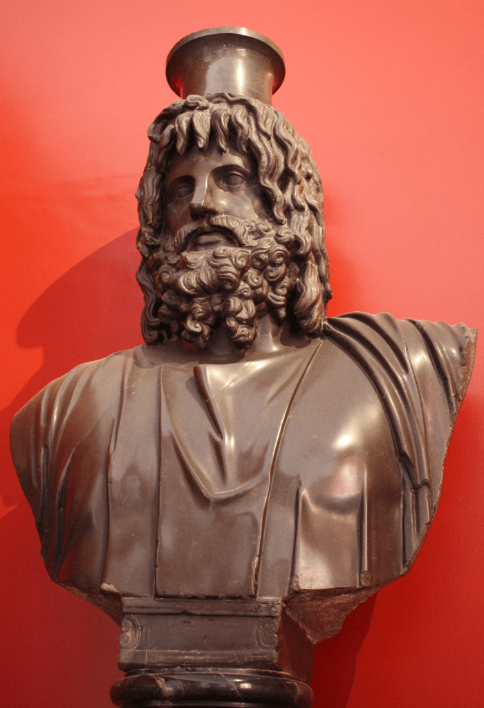 O dovadă clară, palpabilă, nu doar cuvinte pe papirusuri și pergamente, nu avem despre existența marii biblioteci regale. Doar că în Alexandria ptolemeică ea n-a fost singura bibliotecă mare. Mai era un templu închinat unui zeu hibrid babilonian-greco-egiptean, Serapis, cult și zeu creat de Ptolemeu I Soter. Acesta a fost inițial zeul protector al Alexandriei. Apoi și al dinastiei macedonene, așa cum reiese din puținele texte rămase de la Plutarh și Tacitus. Cum a apărut însă, ce zeități vechi se uneau sub acest nou zeu, încă nu e foarte clar dar obiceiul creării unei zeități hibride era vechi. Există doar legenda unui vis (oare de ce nu mă mir când e vorba de visele din toate marile religii? 🤔) pe care l-ar fi avut Ptolemeu I. Sau, cum spunea autoarea unei cărți interesante, Serapis era un amalgam … creat intenționat pentru a aduce armonia între neamurile amestecate din Alexandria, făcându-le mai curând să se roage împreună decât să se încaiere. Serapis a fost creat dintr-un amestec al zeilor egipteni Osiris și Apis, Osirapis, cu zeul grec Zeus, plus un zeu babilonian, cum susțin puțini istorici dar și Asklepios și Dyonisos. Prin crearea acestui melanj, spune o Enciclopedie, zeul hibrid devine stăpânul a tot ceea ce omul cunoaște ori presupune că există: lumea morților lui Hades, lumea pământeană dar și lumea cerurilor, adică lăcașele marilor zei greci și romani. Istoricii spun că este singura zeitate cunoscută până azi, creată oficial de ceea ce pare o comisie formată din Ptolemeu I, preotul și istoricul egiptean Manethon zis „mult-iubit de Toth” sau „care deţine adevărul lui Toth”, Demetrios din Phalerum și un conducător al unui cult al misterelor. O mișcare politică cu bătaie lungă, dacă vreți chiar chiar până azi când unii regi creștini încă se folosesc de pius, felix, invictus (regele este pios, este fericit că primește protecția divină și din acest motiv este de neînvins).